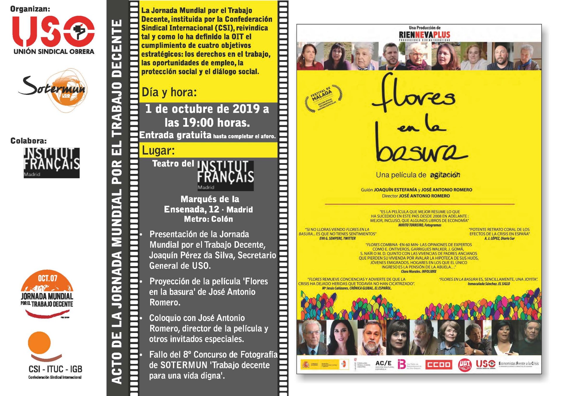 Cartel y manifiesto Jornada Mundial por el Trabajo Decente 7 Octubre´2020